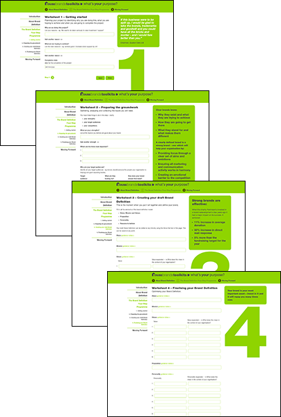 Put simply, the toolkit will deliver a clear brand definition that is unique to your organisation. This is important as the brand definition is the blueprint that will direct all your brand communication and activity so that you are building a coherent brand reputation more quickly and more thoroughly.
